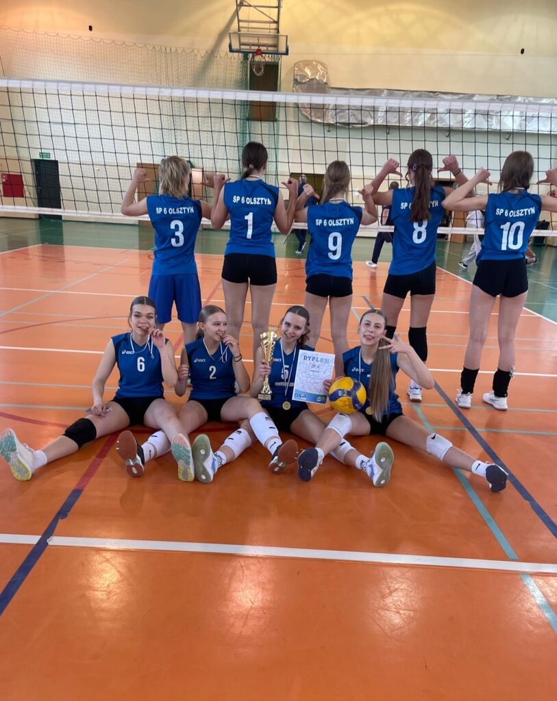 Dziewczynki SP6 złotymi medalistkami Igrzysk Młodzieży- Mistrzostw Olsztyna w piłkę siatkową dziewcząt szkół podstawowych w roku szk. 2025/2026. W dniu 13.04.2026r. w hali sportowej OSiR przy ul. Mariańskiej 1 odbyły się międzyszkolne rozgrywki w piłkę siatkową dziewcząt. Do rozgrywek zgłosiło się 6 zespołów z olsztyńskich szkół podstawowych: SP1, SP6, SP9, SP15, SP12, SP22, które zostały podzielone na dwie grupy A i B. Zawodniczki z naszej szkoły zagrały w grupie B i wszystkie mecze wygrały w setach 2:0. W meczu finałowym zagrały z zespołem z grupy A drużyną dziewcząt SP 9 i wygrały mecz w setach 2:0 i takim sposobem zostały złotymi medalistkami Mistrzostw Olsztyna. Skład zwycięskiej drużyny: Joanna Rzodkiewicz kl.8a, Kornelia Kodzik kl.8a, Lena Sienkiewicz kl.8a, Natalia Rosińska kl. 8b, Michel Reuchenko kl.8b, Wiktoria Łukasiak kl.7b, Zuzanna Tomaszewicz kl.7b, Maja Ulewicz kl.7b, Amelia Bukowska kl. 6a. Opiekun zespołu: nauczyciel wych. fizycznego Grażyna Gwiazda. Zawodniczkom gratulujemy i życzymy dalszych sukcesów sportowych 👏🏻👏🏻👏🏻🎉🙌🙌 Klasyfikacja końcowa: 1. I miejsce -SP 6. 2. II miejsce – SP9. 3. III miejsce – SP15.