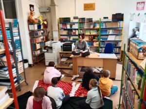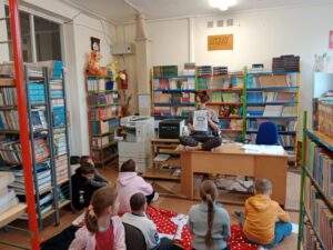 W piątek 17.04.26 dzieci👭 przebywające w bibliotece🏫 usłyszały opowiadanie „Pamięć drobinek” , którego głównym bohaterem była zaginiona drobinka o imieniu Maślak. Przedstawiona historia w delikatny sposób nawiązywała do dramatycznych wydarzeń roku 1️⃣9️⃣4️⃣3️⃣ mających miejsce w getcie warszawskim🌼.